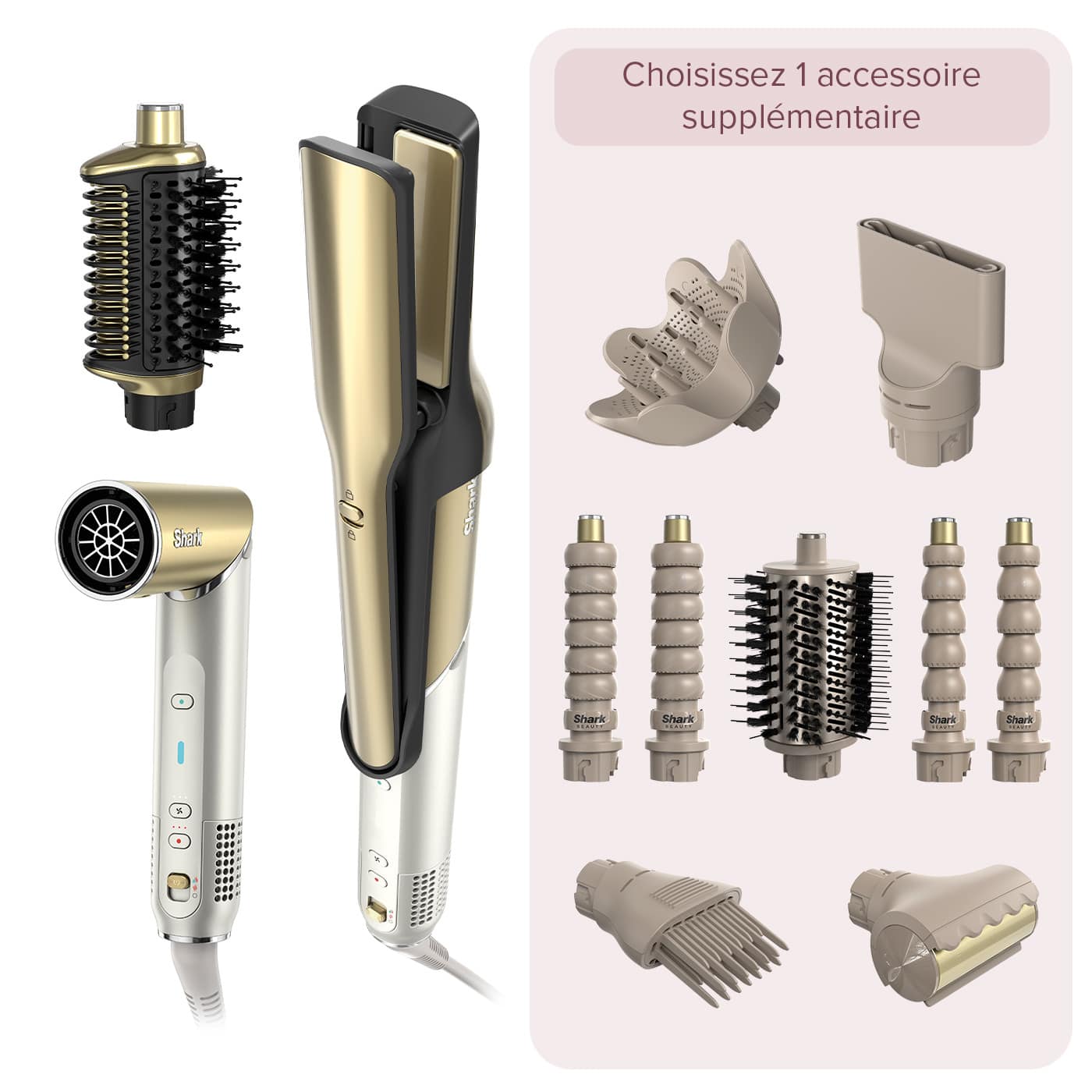 Créez votre Shark Glam sur mesure. Choisissez 1 accessoire supplémentaire* selon votre type de cheveux et vos besoins.